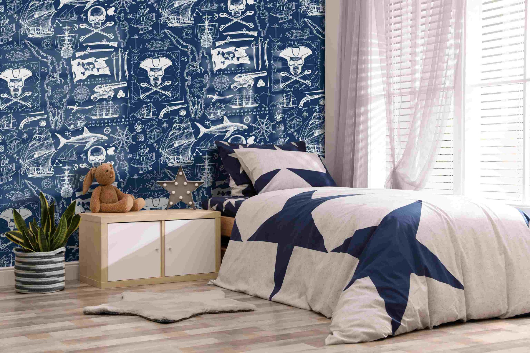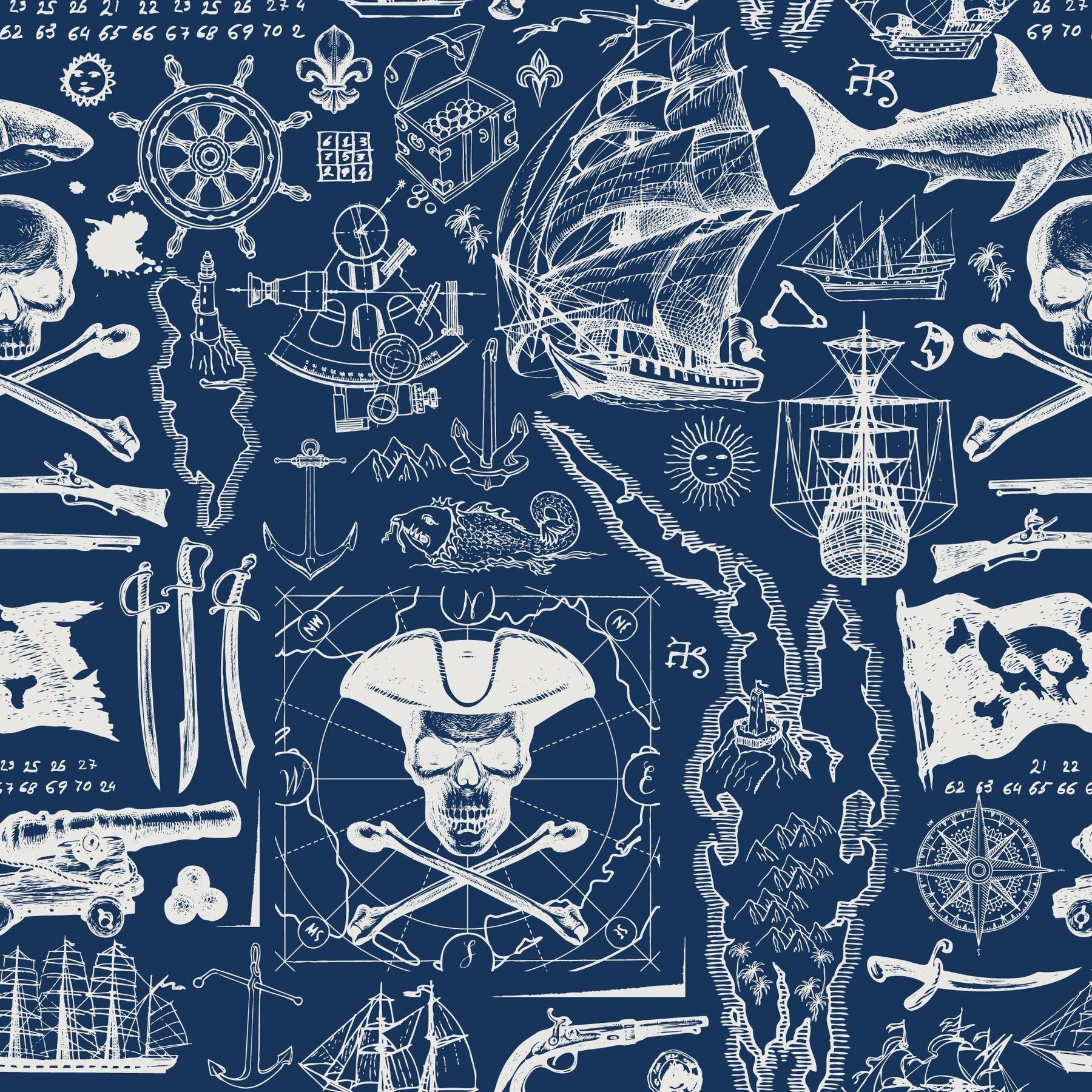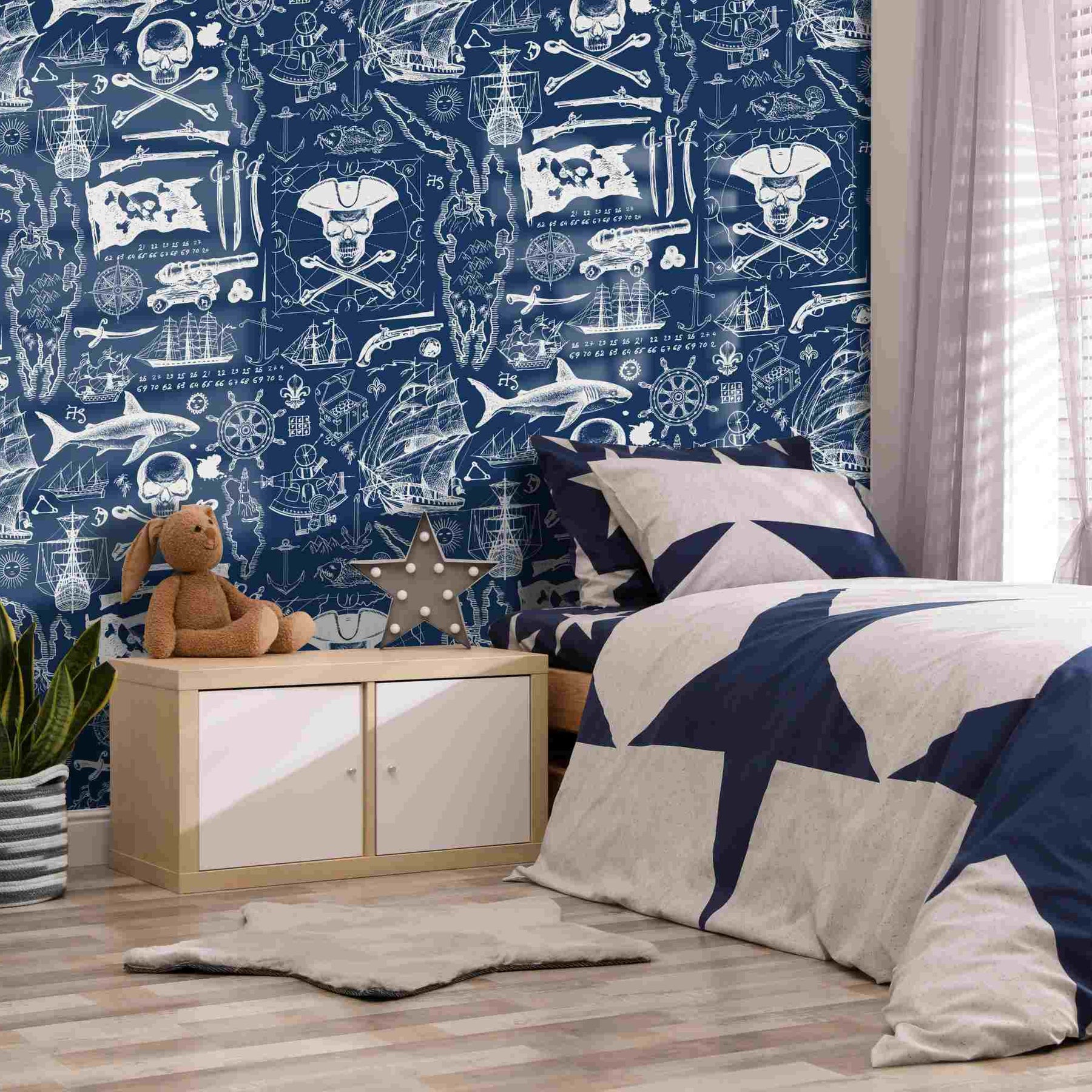 This wallpaper is fun and creative, and the colour pallet is versatile and tasteful. The Pirates wallpaper is a custom printed-to-order, high-quality, textured wallpaper that is scrubbable and scratch resistant—ideal for the office, bedroom, passage, guest cloakroom or any other indoor living space.