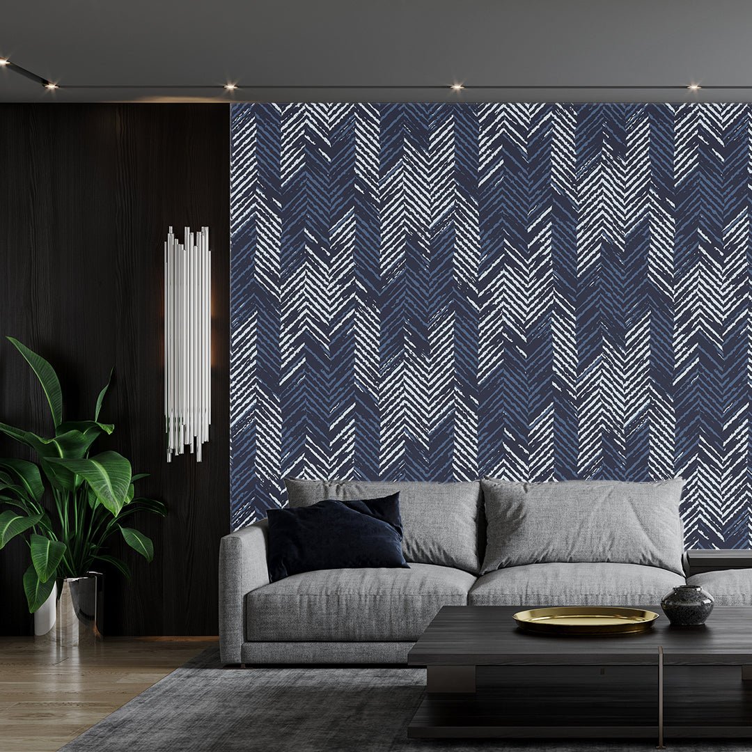 This beautiful blue and white geometric print wallpaper is simple, sophisticated, and brings life into any space. Add a subtle pop of colour with the Pathways wallpaper, a custom printed-to-order, high-quality, textured wallpaper that is scrubbable and scratch resistant—ideal for the office, bedroom, passage, guest cloakroom or any other indoor living space.