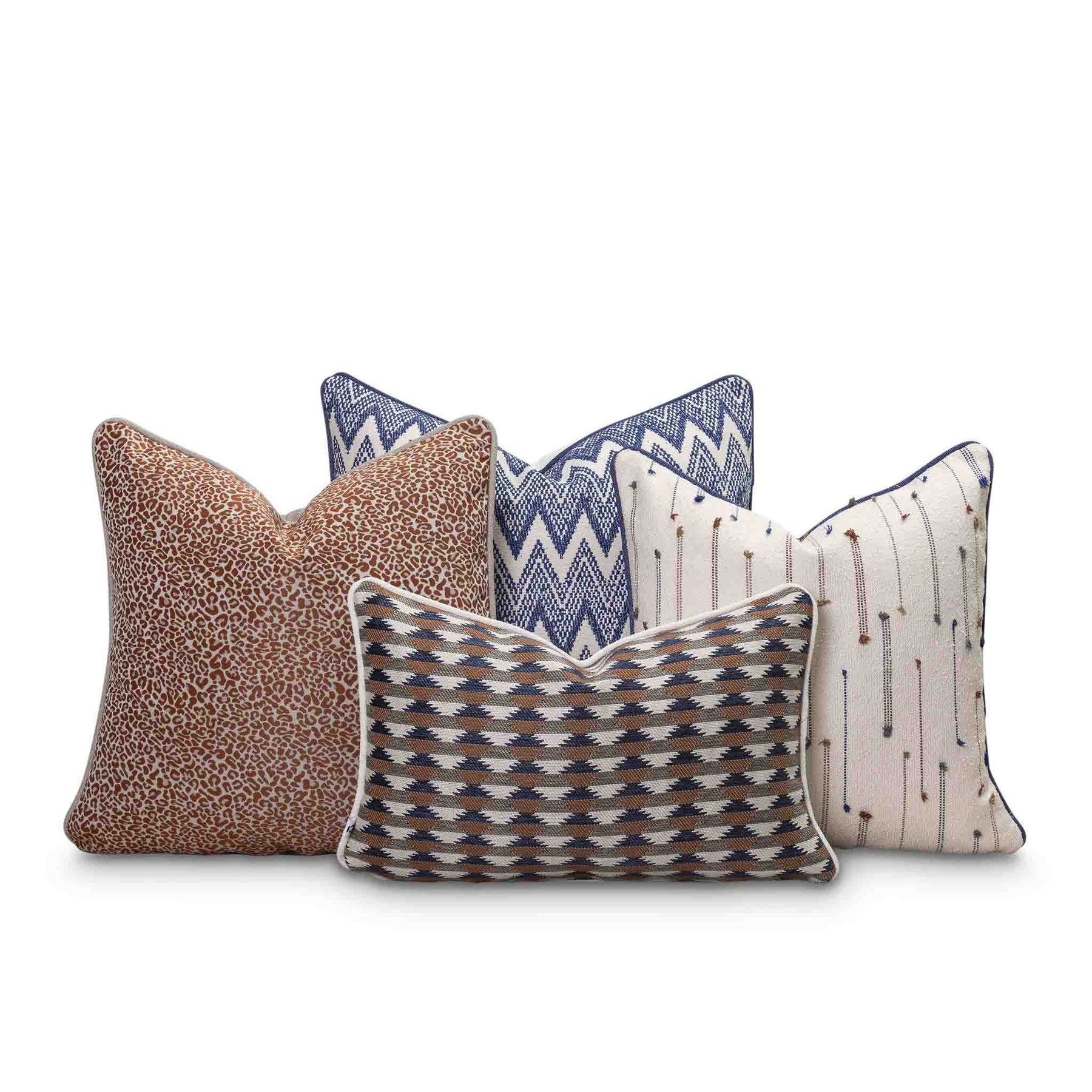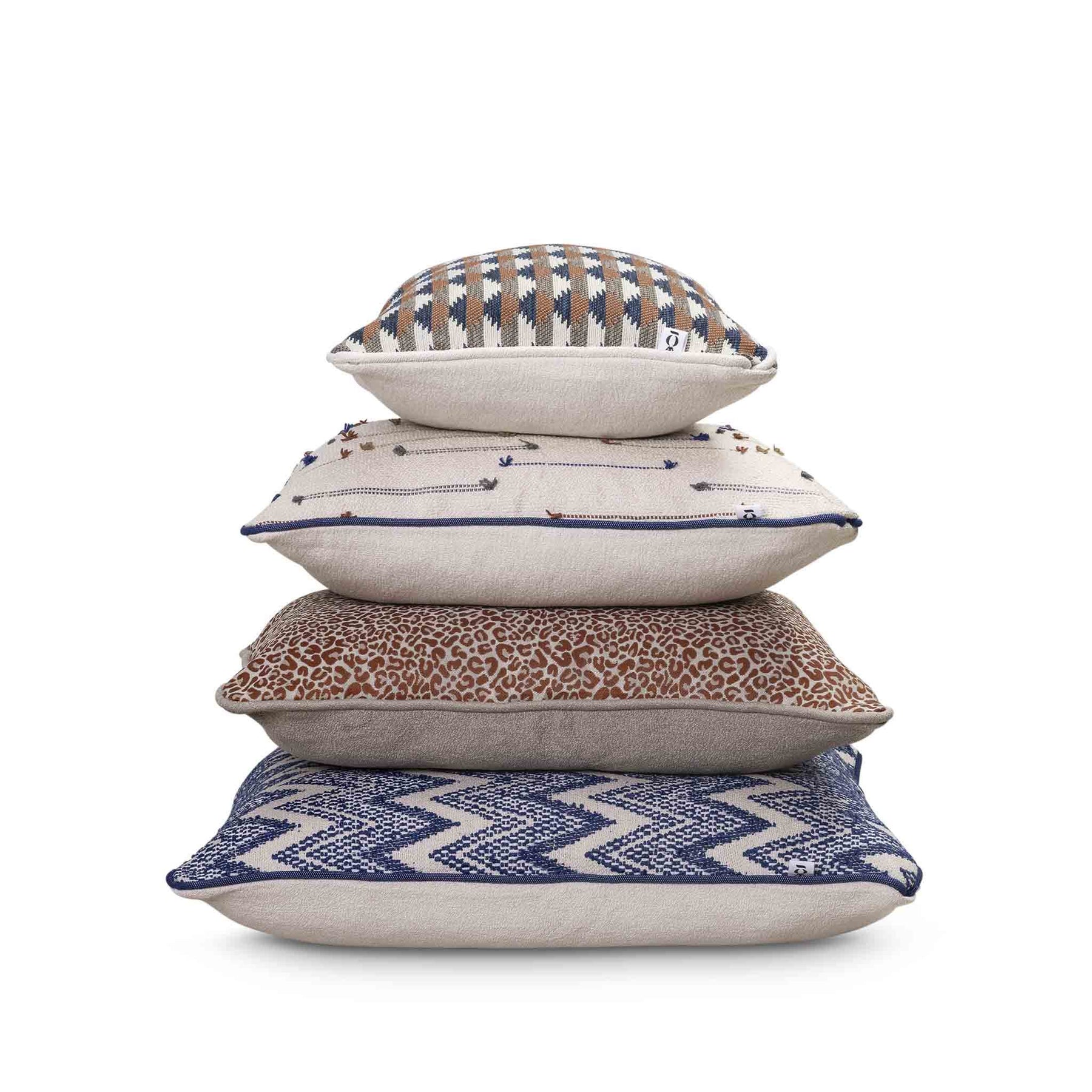 Bring depth and warmth to your living space with this outdoor scatter cushion set of 4, beautifully balanced in blue and brown earthy tones. Each cushion features a unique woven or embroidered pattern, from bold geometrics to subtle stitched details, creating a layered, designer look. Perfect for sofas, armchairs or beds, this coordinated set adds texture, visual interest and a curated feel to modern, coastal or contemporary interiors.